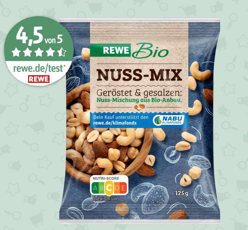Die Mischung lässt sich ebenfalls gut mit Joghurt kombinieren. Und passt exzellent zu Salaten oder zu Suppen. Die aromatischen Nüsse sind ein sehr gelungenes Rewe-Produkt und in kleinen Mengen eine gesunde Zwischenmahlzeit. Aber Achtung! Es besteht Suchtgefahr.